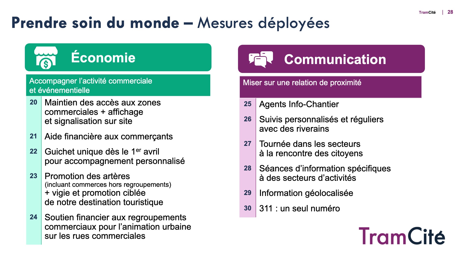 Mobilité, vitalité commerciale et services à la population : la Ville met tout en œuvre pour atténuer les impacts des chantiers du tramway et prendre soin de son monde.