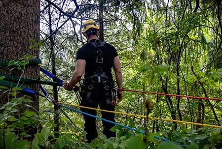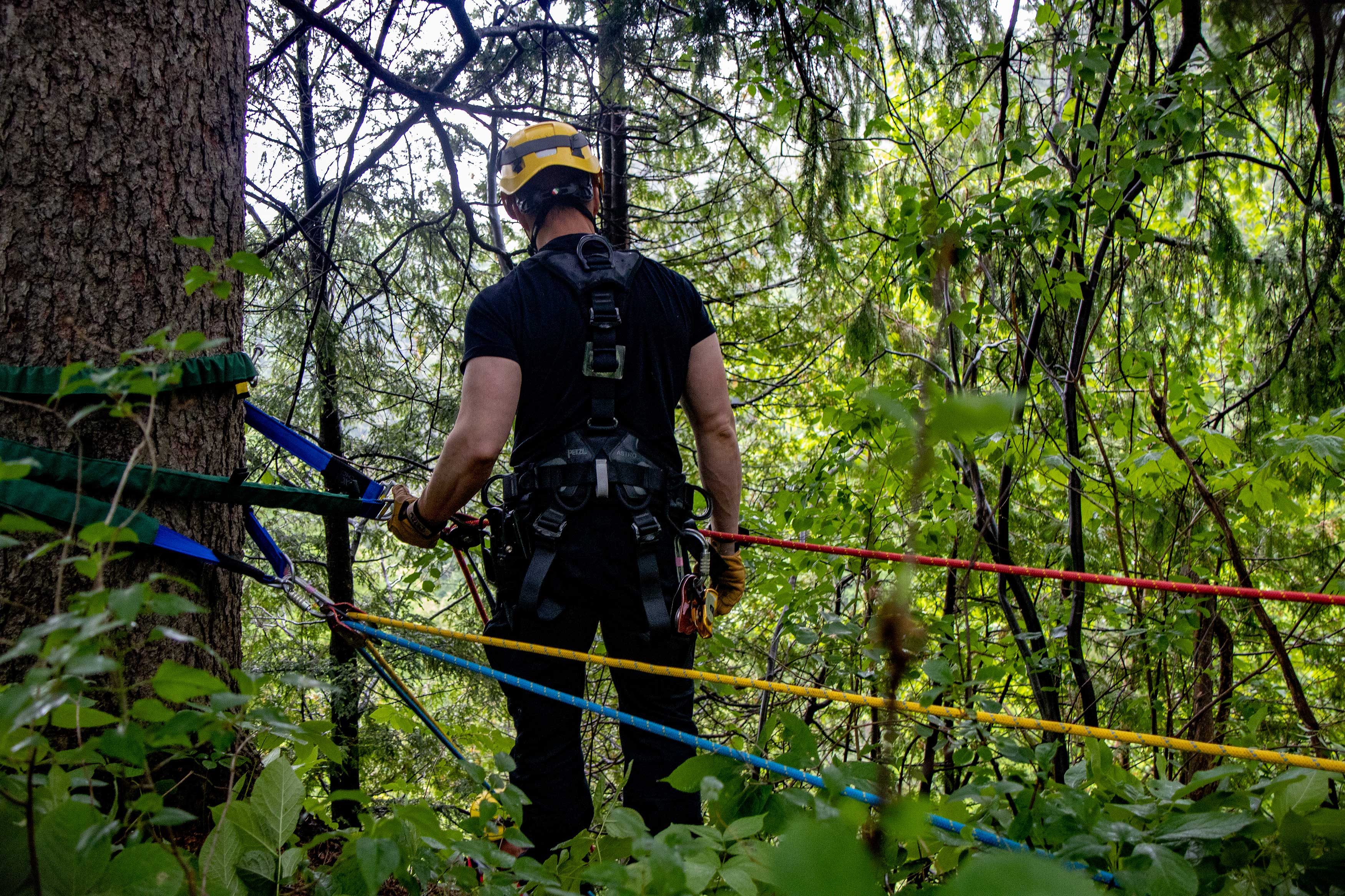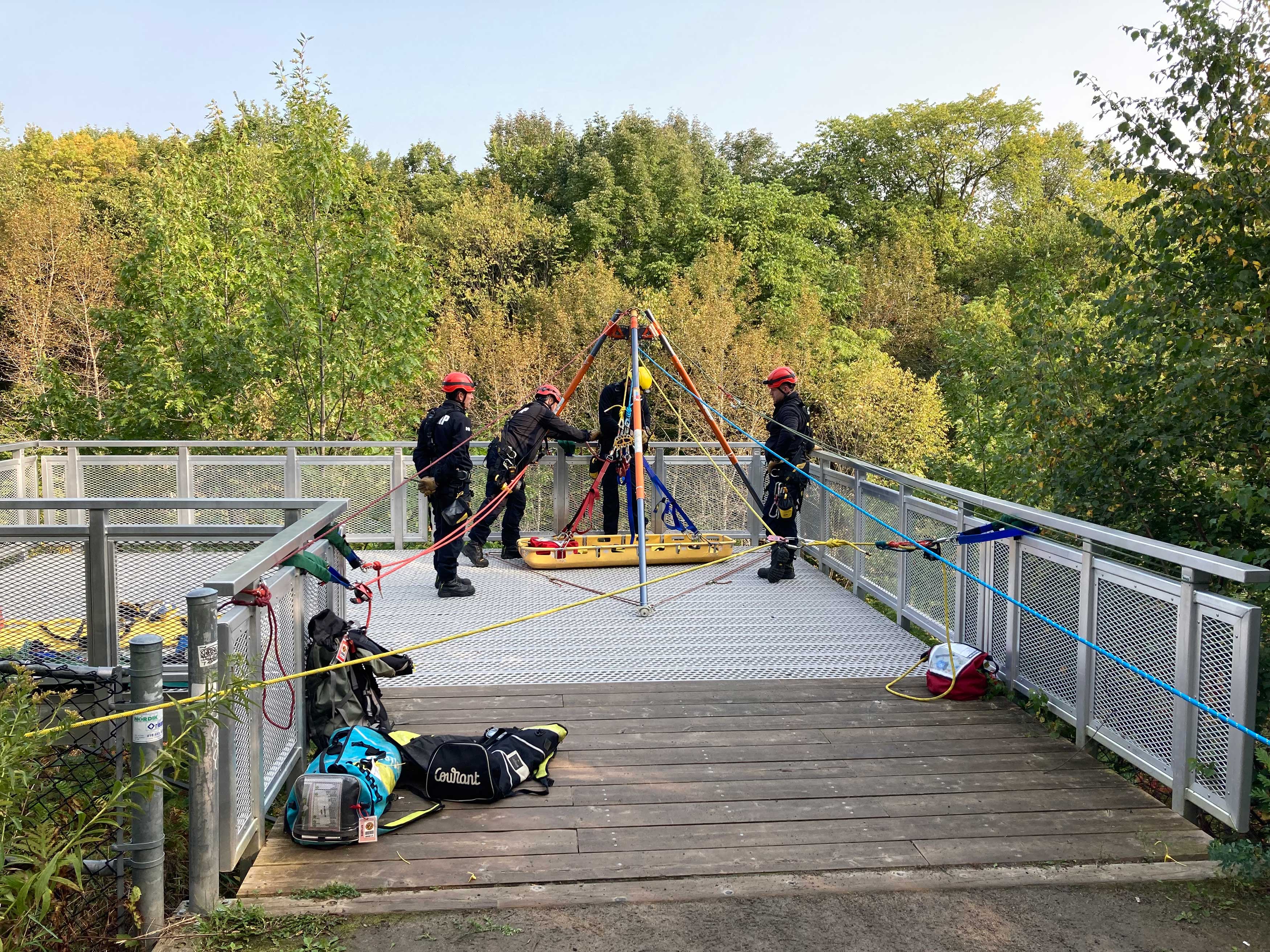 Ces mêmes 43 pompiers sont aussi spécialisés en sauvetage vertical. Ils sont appelés à Pour ce type de sauvetage, les équipes réalisent des évacuations et des sauvetages techniques nécessitant l’utilisation de cordages, que ce soit en hauteur, en descente ou au moyen d’une tyrolienne. Dans certains cas, ils peuvent également prêter main-forte aux équipes de sauvetage nautique. Leur savoir-faire en sauvetage vertical se combine d’ailleurs à leur expertise en sauvetage en espace clos.
