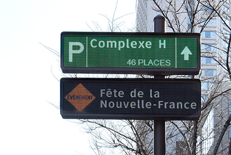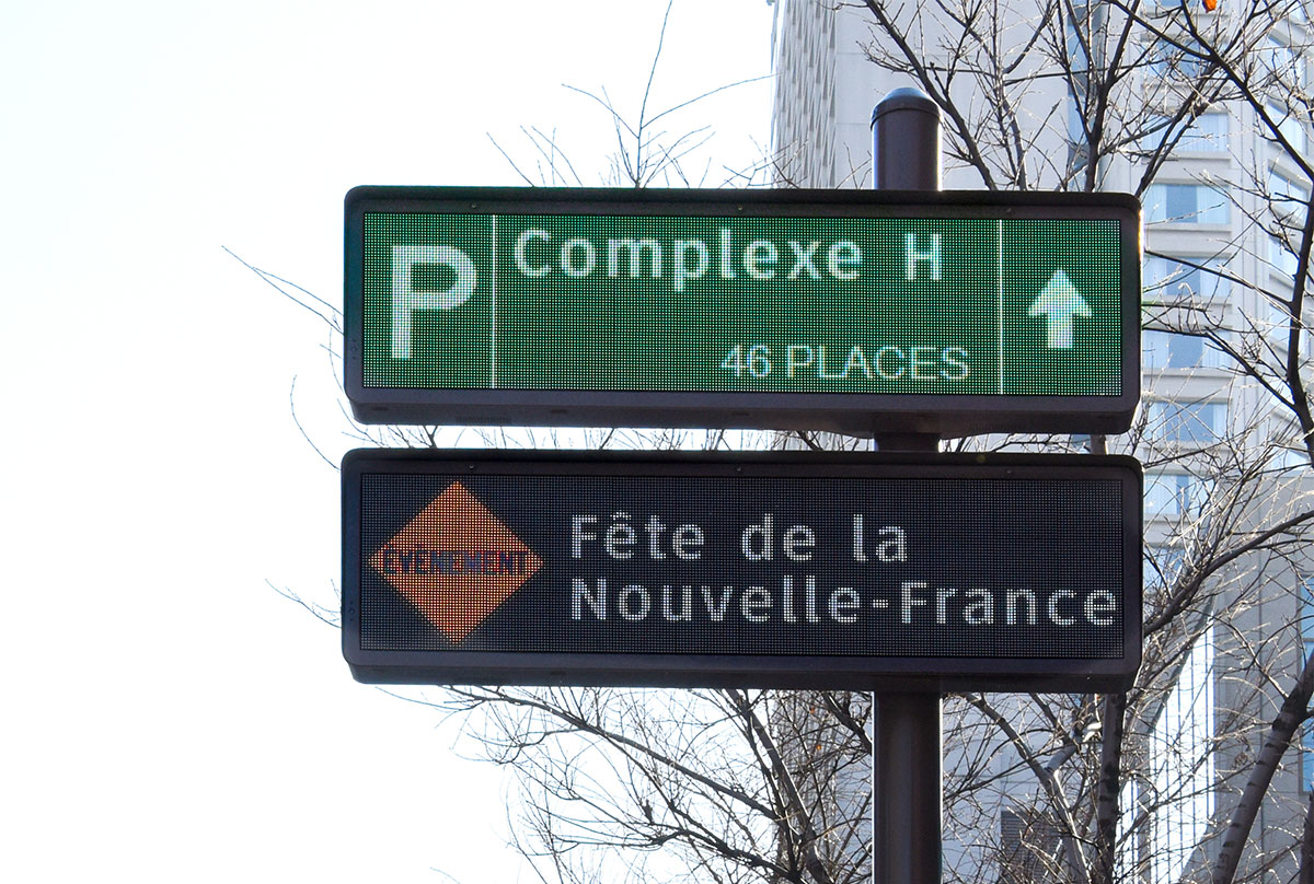 Le téléjalonnement est un système de guidage à l’intention des automobilistes. Les panneaux affichent en temps réel le nombre de places disponibles dans les parcs de stationnement.
