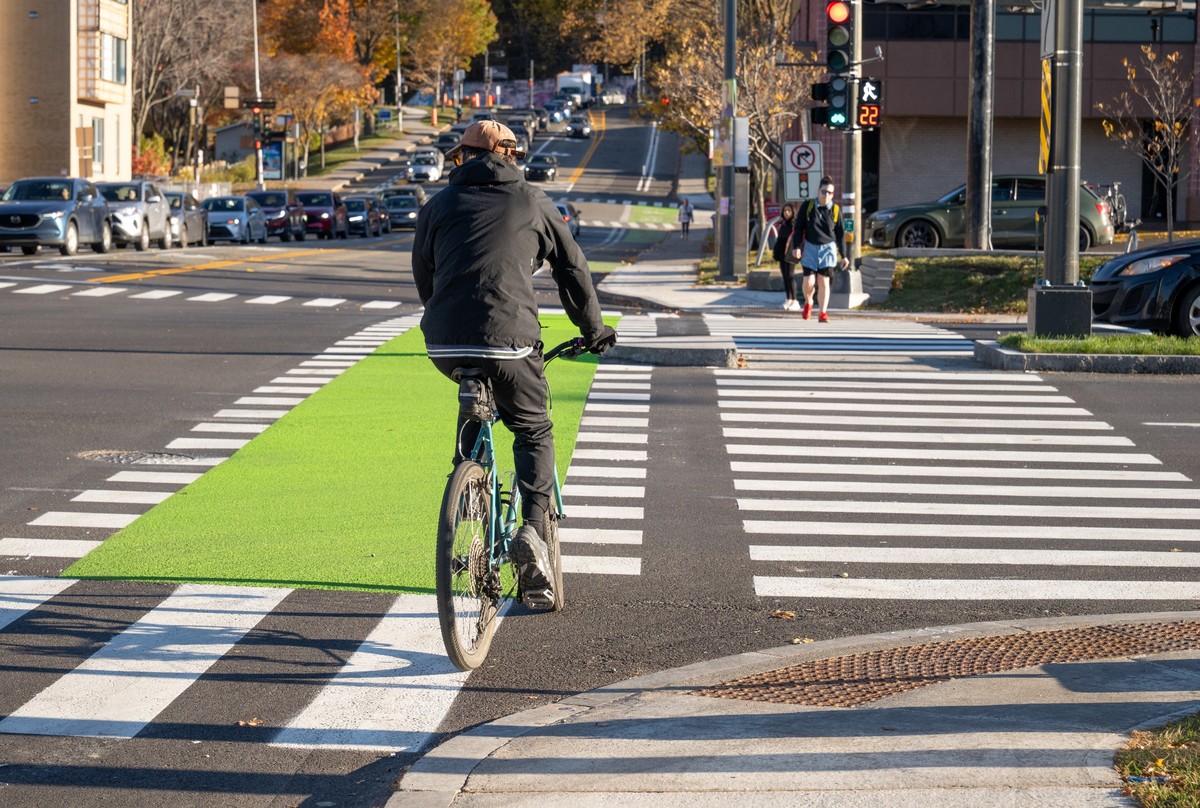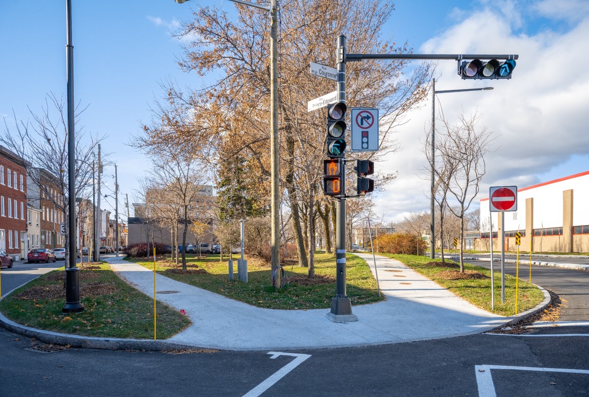 Les intersections sont des points de rencontre où tous les types de transports cohabitent. Pour augmenter la visibilité des personnes les plus vulnérables, pensons aux piétons, piétonnes ou aux cyclistes, la Ville peut, entre autres :