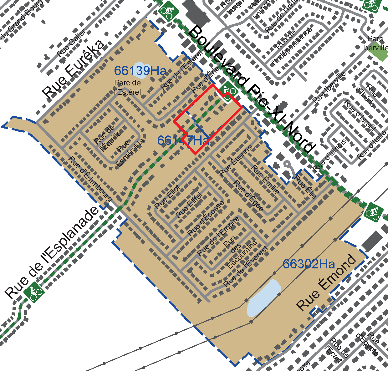 La modification réglementaire proposée concerne une section de la rue de l'Esplanade. Les adresses concernées sont du 1469 au 1531 d'un côté de la rue, et du 1470 au 1522 de l'autre.