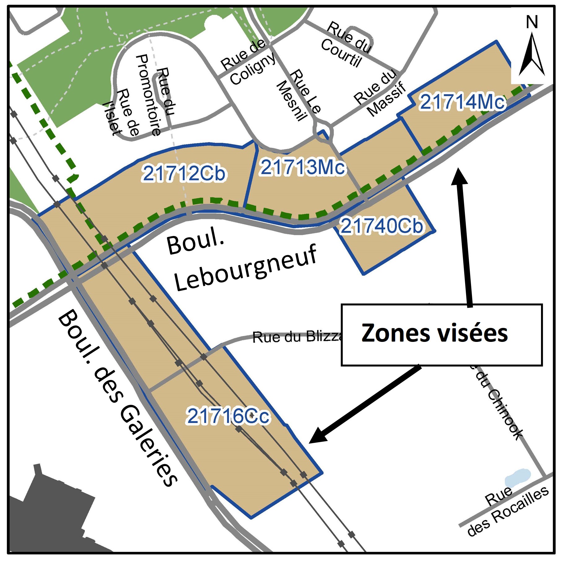 Des modifications réglementaires sont requises afin de permettre les activités commerciales de ventes au détail et de ventes de services sur tous les étages d’un édifice dans certaines zones qui longent les boulevards Lebourgneuf et des Galeries.