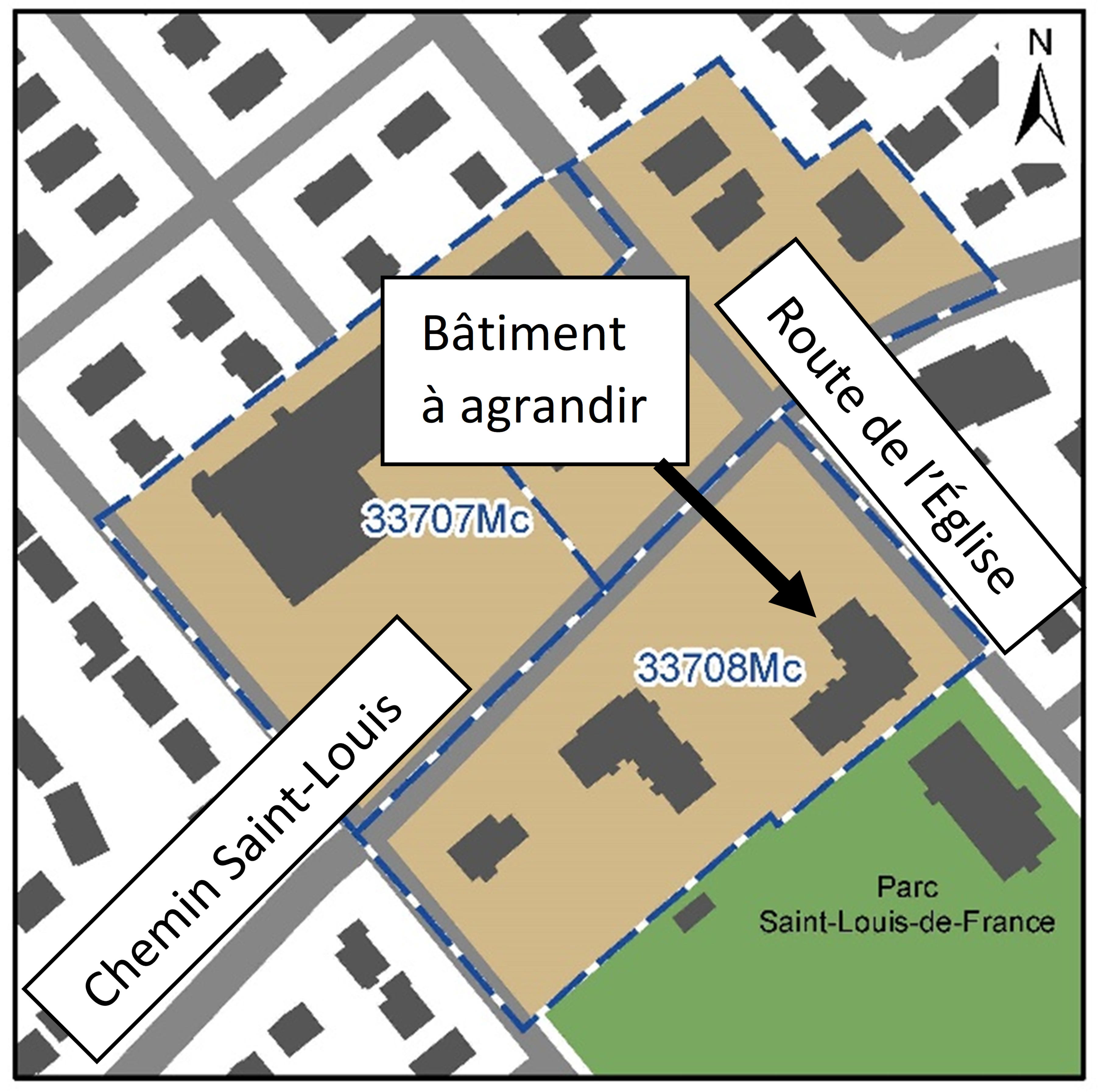 Un requérant souhaite agrandir son immeuble résidentiel situé au 1500, route de l’Église, près de l’intersection avec le chemin Saint-Louis.