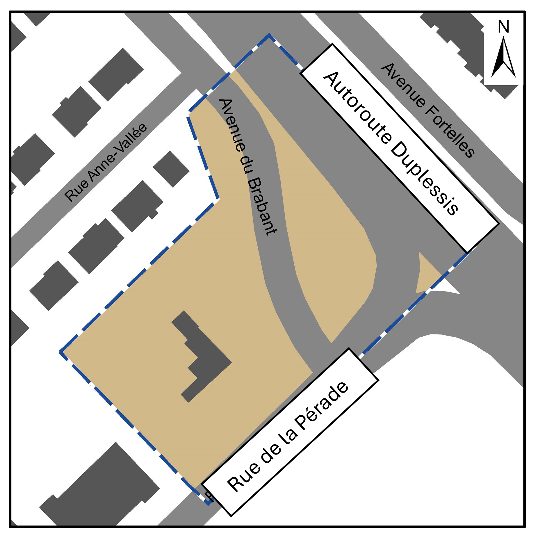 La zone visée est située à l’est de l’autoroute Duplessis, entre les rues Anne-Vallée et de La Pérade, et entre les avenues Brabant et Bégon.