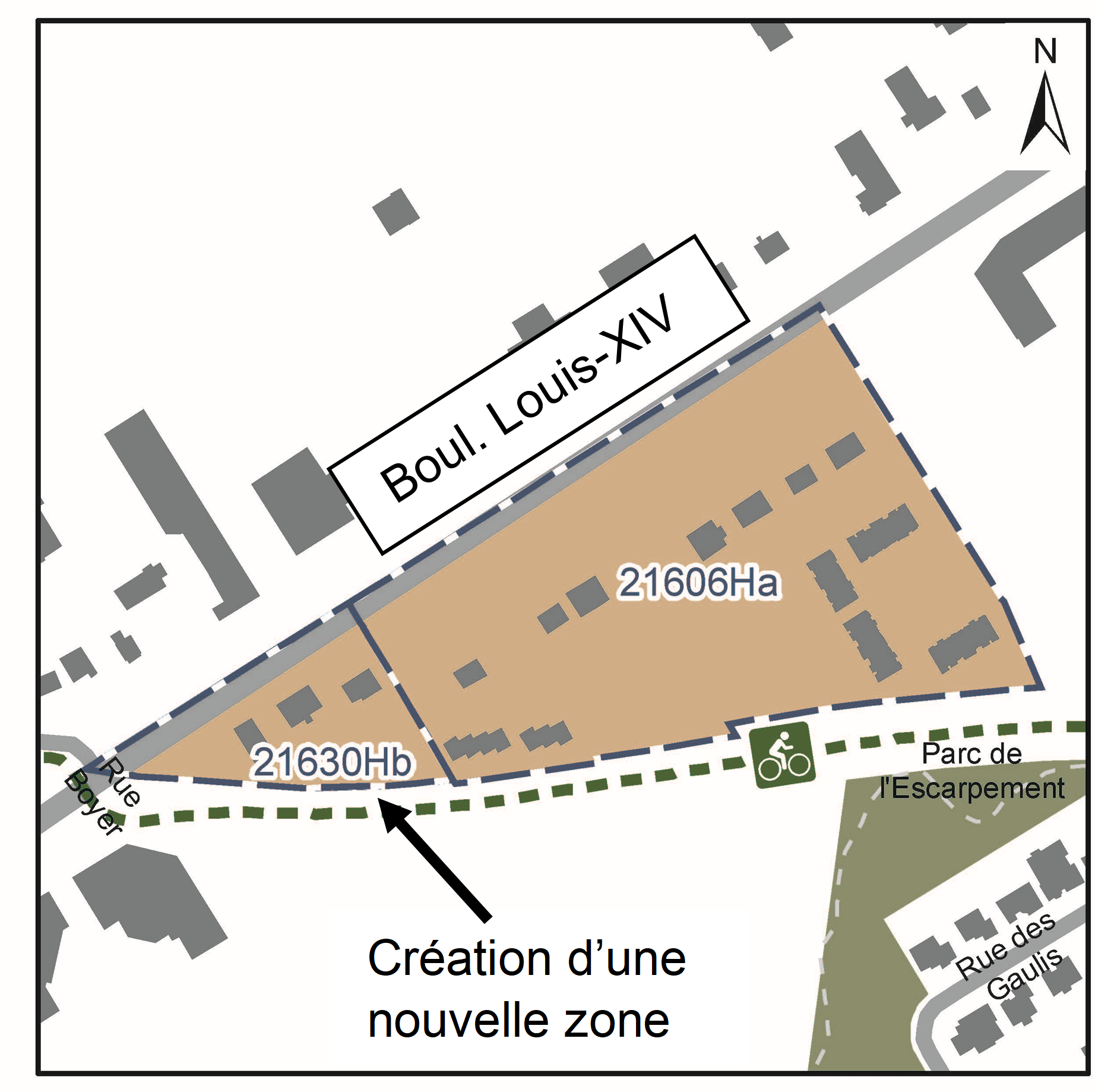 - Créer une nouvelle zone (21630Hb) à même la zone existante (21606Ha) et y reconduire les règles en vigueur.