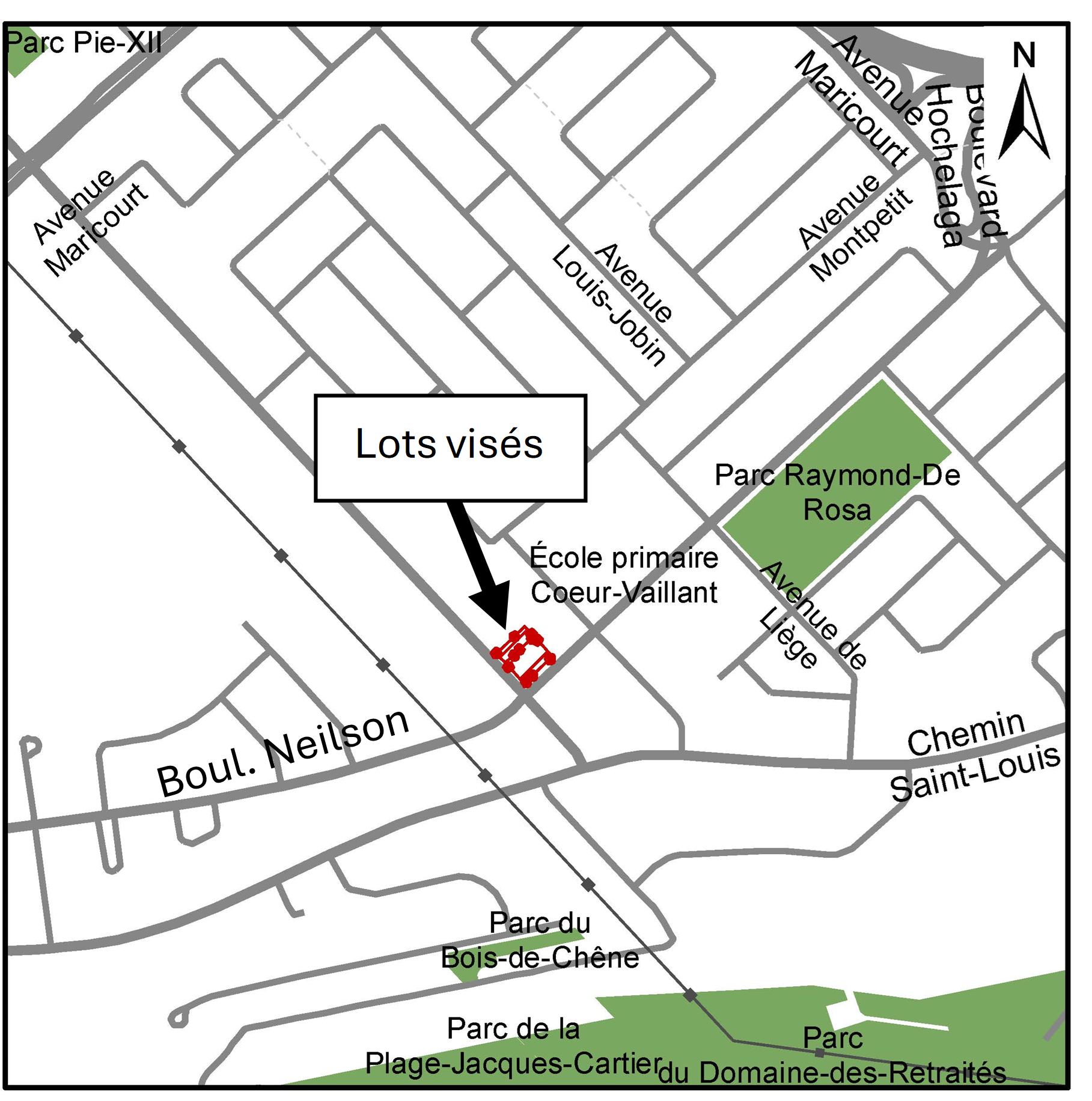 Un projet résidentiel est prévu sur deux lots situés approximativement à l’intersection des boulevard Pie-XII Nielson et du chemin Saint-Louis. Une résidence unifamiliale et un bâtiment de 12 logements seraient démolis pour faire place au projet.