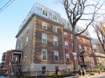 - Murs : en maçonnerie de pierre, généralement en pierre de taille; résidentiel : parement de brique, de planche de bois, de bardeaux de bois ou bardeau d'amiante.