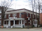 - Ouvertures régulières et rectangulaires garnies de chambranles, de clefs, de linteaux et de plates-bandes; porte à panneau(x) avec vitrage surmontée ou non d’une imposte; fenêtres à battants et à grands carreaux, à battants avec imposte ou à guillotine avec ou sans petits-bois.