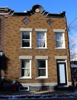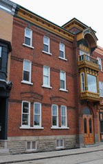 Ce type possède habituellement deux ou trois niveaux d’occupation coiffés d’une toiture à faible pente vers l’arrière ou à bassin avec égout intérieur. Étant donné qu’il occupe toute la largeur du lot, il comprend des murs mitoyens et une porte cochère. La façade principale est en brique, tandis que les façades secondaires sont parfois revêtues de matériaux légers comme le clin de bois, le bardeau d’amiante- ciment ou la tôle en plaques. Les ouvertures sont réparties plutôt régulièrement d’un niveau à un autre, alors que les modèles de fenêtres demeurent variables; elles sont souvent surmontées d’impostes. Aligné sur le trottoir, le bâtiment possède peu de saillies si ce n’est la présence de logettes ou d’oriels aux étages. L’ornementation est concentrée autour du couronnement avec la présence d’un parapet, ou encore d’une corniche ouvragée en tôle ou en bois. Les ferblantiers- couvreurs de l’époque ont dû se renouveler dans la confection d’éléments décoratifs, puisqu’ils ont perdu une bonne part de leur marché avec l’avènement des toits plats recouverts de goudron ou de membranes et de gravier.