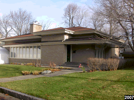 - Composition voulant renouveler la forme de l’architecture résidentielle : maison unifamiliale destinée à la classe moyenne qui domine le développement des banlieues, puise dans les influences issues du passé et regroupe plusieurs types dont le bungalow nord-américain, à long pan ou à niveaux décalés (split-level).
