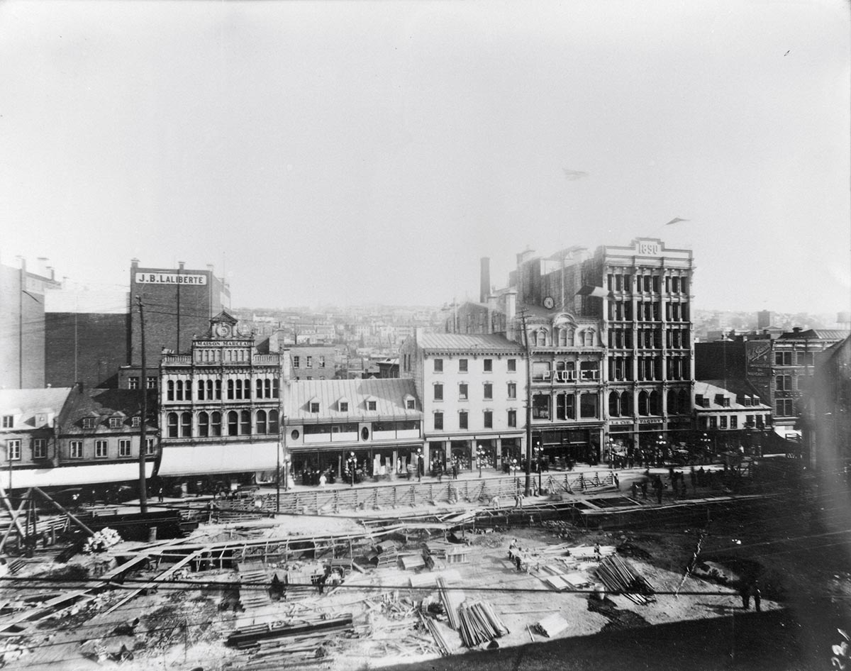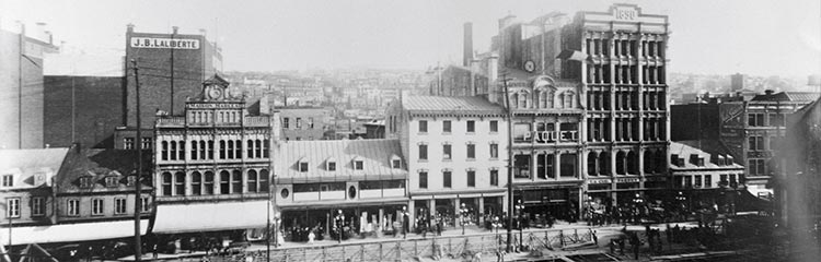 Le patrimoine bâti de Saint-Roch est le résultat d’une évolution spectaculaire qui s’amorce au 19e siècle. En moins d’un siècle, le modeste faubourg du quartier Saint-Roch s’est métamorphosé en un prospère centre-ville. En 1885, un journaliste s’exclame d’ailleurs que « le commerce et l’industrie ont fait de Saint-Roch une véritable ville, dont la population augmente d’une manière prodigieuse d’année en année »1. Voyons comment le quartier conserve les traces de cette évolution entre 1800 et 1940.